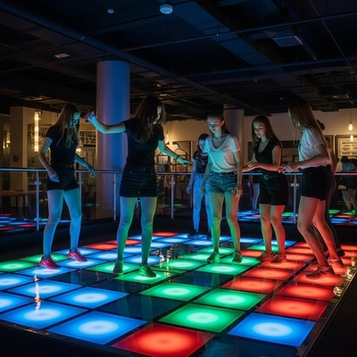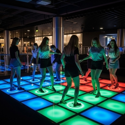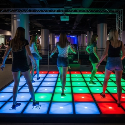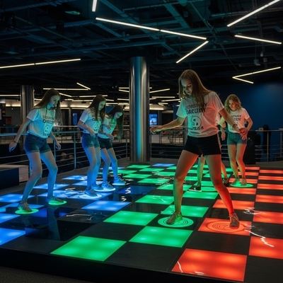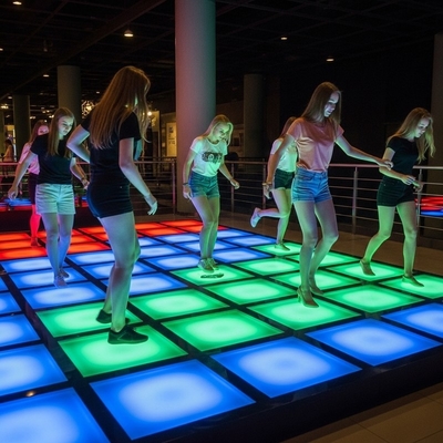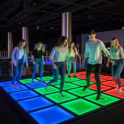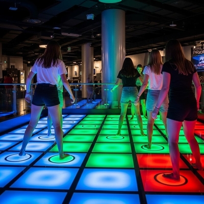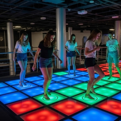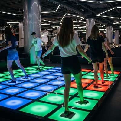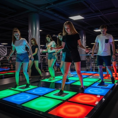 Мы интегрируем высокоточные датчики движения и чувствительные к давлению светодиодные плитки для обеспечения интерактивного взаимодействия в режиме реального времени. Игроки наступают, прыгают или танцуют на полу, и он динамически реагирует — начислением очков, изменением визуальных эффектов или открытием новых уровней. Система естественным образом подходит для одиночной игры для развлечения или для группы из двух человек, соревнующихся друг с другом в однопользовательском и многопользовательском режимах.