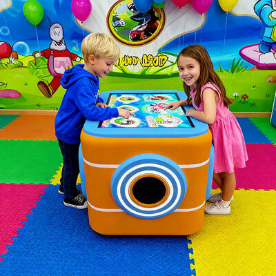 Детский интерактивный игровой стол с сенсорным экраном и мультитач-технологией, с демонстрацией обучающей анимации для использования в помещении и на улице